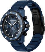 - Boîtier de 43,5 mm, largeur de bracelet de 22 mm, cristaux minéraux, mouvement à quartz avec affichage analogique du chronographe, importé