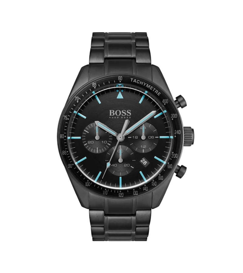 Hugo Boss 1513675 Montre chronographe pour homme avec bracelet en acier inoxydable Noir 44 mm