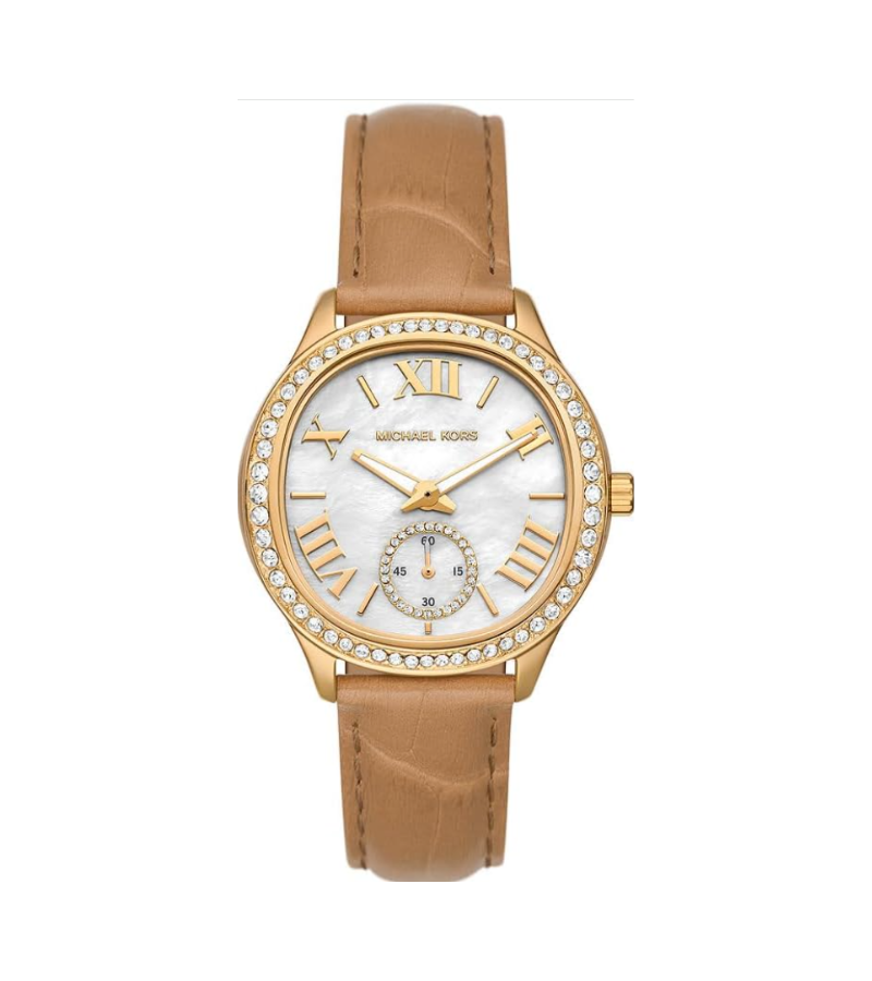 • Michael Kors Montre Sage pour Femme, Mouvement à Quartz Trois Aiguilles avec Bracelet en Acier Inoxydable ou en Cuir