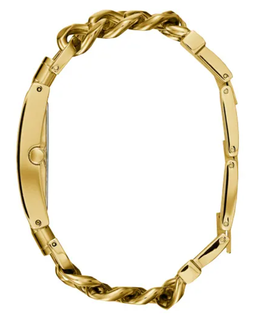 • Bracelet : Bracelet à maillons chaîne en acier inoxydable doré, avec un fermoir G-link. Le bracelet est ajustable par retrait de maillons.