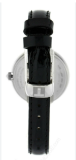 • Bracelet : Cuir noir avec surpiqûres noires.